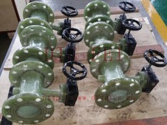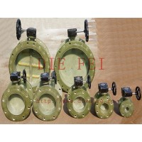 玻璃钢蝶阀把主要易腐蚀部件如阀体、阀板等设计为玻璃钢材料,玻璃钢部件所使用的纤维、纤维织物与树脂类型由蝶阀的工作条件确定。玻璃钢阀体的主体形状为直管状,它的结构特点是以一段玻璃钢直管为基础,然后再增加法兰、密封环制造而成。该种蝶阀具有耐腐蚀能力强、成本低廉、制造工艺简单灵活等特点。质轻而硬、不导电、机械强度高、耐腐蚀、安装方便、耐温高。可添加防静电材料,达到防静电作用。玻璃钢蝶阀可用于输送腐蚀性气体的管道中,具有不腐蚀,寿命长的特点,可做成各种颜色。